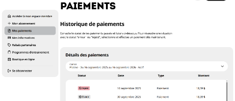 Tu peux consulter tous tes abonnements dans ton Espace Membre, incluant les abonnements expirés ou résiliés des 7 dernières années.