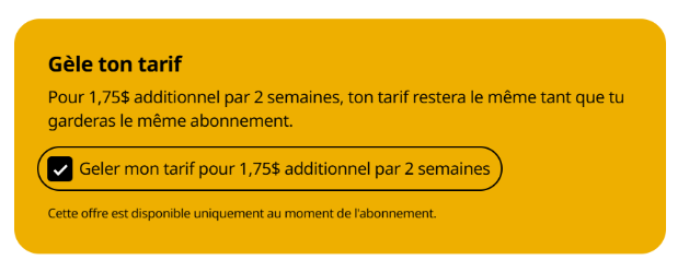 Important à savoir : L’option « Gel de tarif » est offerte uniquement au moment de ton inscription.