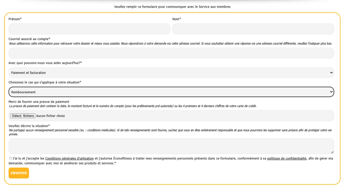 Une fois la résiliation complétée, si tu penses être admissible à un remboursement, remplis ce formulaire : Formulaire de remboursement. Notre équipe analysera ta demande et te confirmera si tu es admissible à un remboursement.
